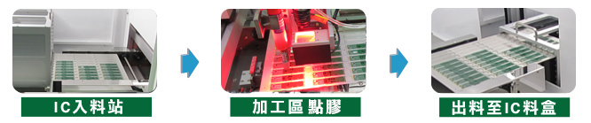 - 3. 點膠作業完成後,自動將板材送出退料區。